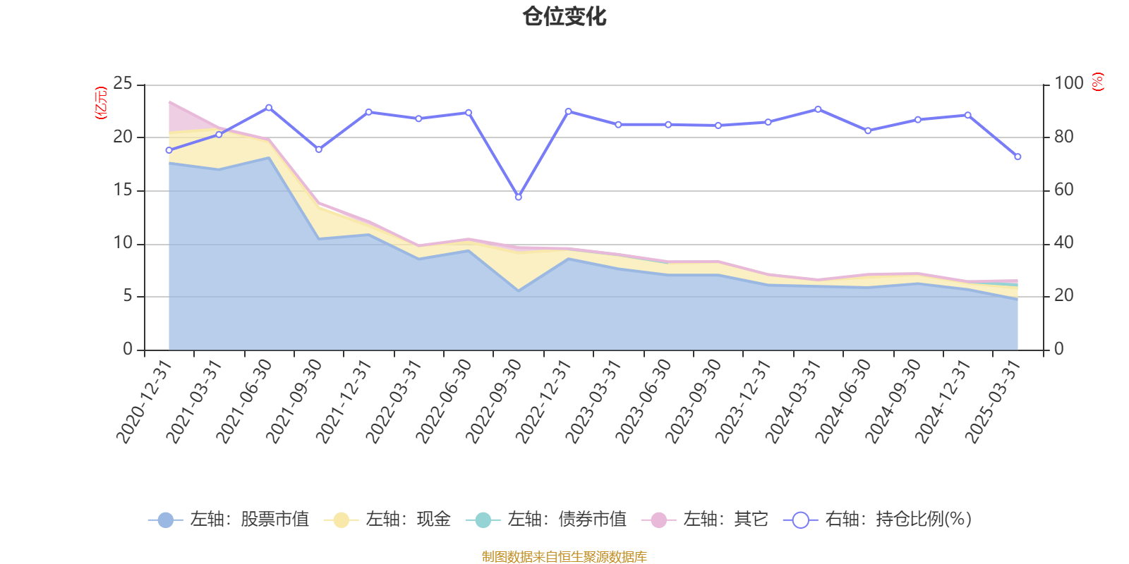 据定期报告数据统计,近三年平均股票仓位为83.24%,同类平均为85.95%。2021年上半年末基金达到91.34%的最高仓位,2022年三季度末最低,为57.62%。