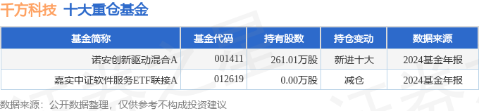 持有千方科技最多的基金为诺安创新驱动混合A,目前规模为3.21亿元,最新净值1.028(4月18日),较上一交易日上涨0.0%,近一年上涨16.29%。该基金现任基金经理为邓心怡左少逸。